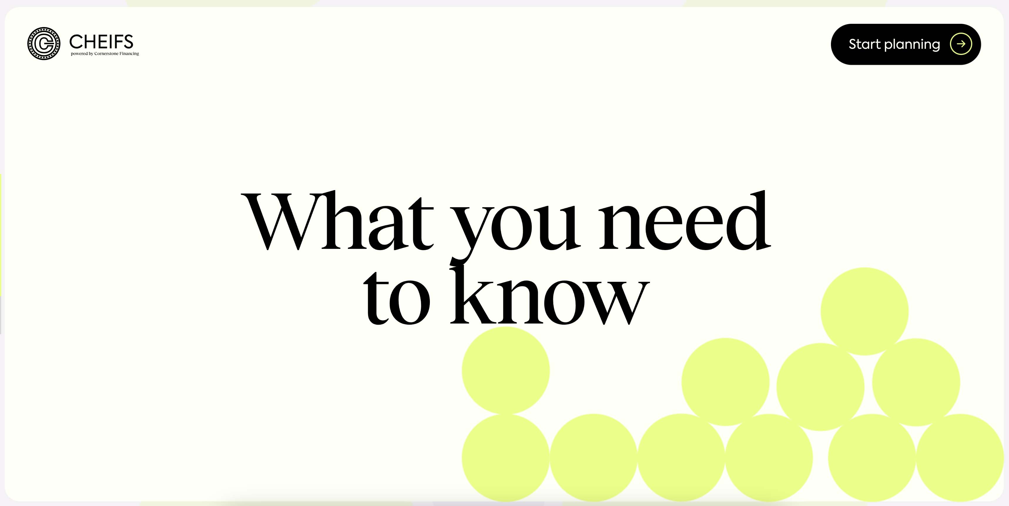 The journey began with building CHEIFS’ branding and marketing strategy. Alongside the website, we developed an array of visual assets, including investor presentations, product guides, social media materials, and print collateral. Each asset was meticulously crafted to ensure that every interaction with the CHEIFS brand is impactful. Whether it’s a social media banner or a product fact sheet, every touchpoint reflects Cornerstone’s commitment to clear communication and financial empowerment.
